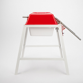 Удобный зажим на соплах поможет установить бутылки. Незаменима для небольших и средних винных производств.